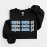 Make a bold sisterhood statement with our Triple Alpha Delta Pi Sweater – a modern twist on a classic sorority crewneck. Made with soft, mid-weight fleece and a relaxed unisex fit, this cozy sweater features a stacked triple “Alpha Delta Pi” print for a fun, elevated look. Perfect for bid day, big/little reveal, campus events, or everyday wear, it’s a must-have staple for every ADPi member or alumna.