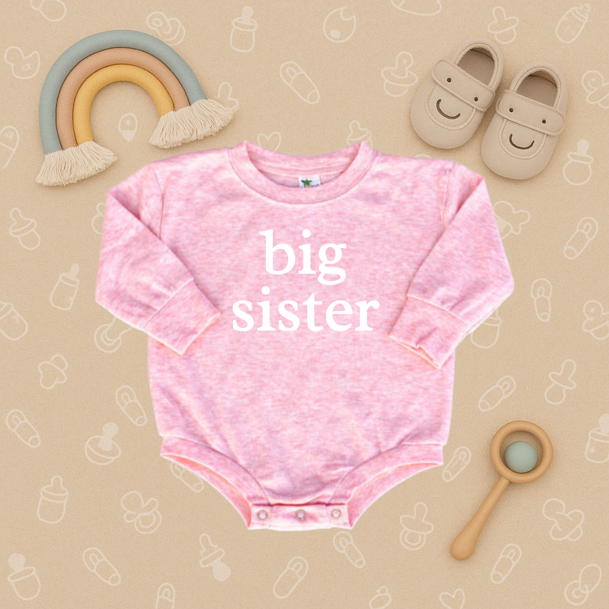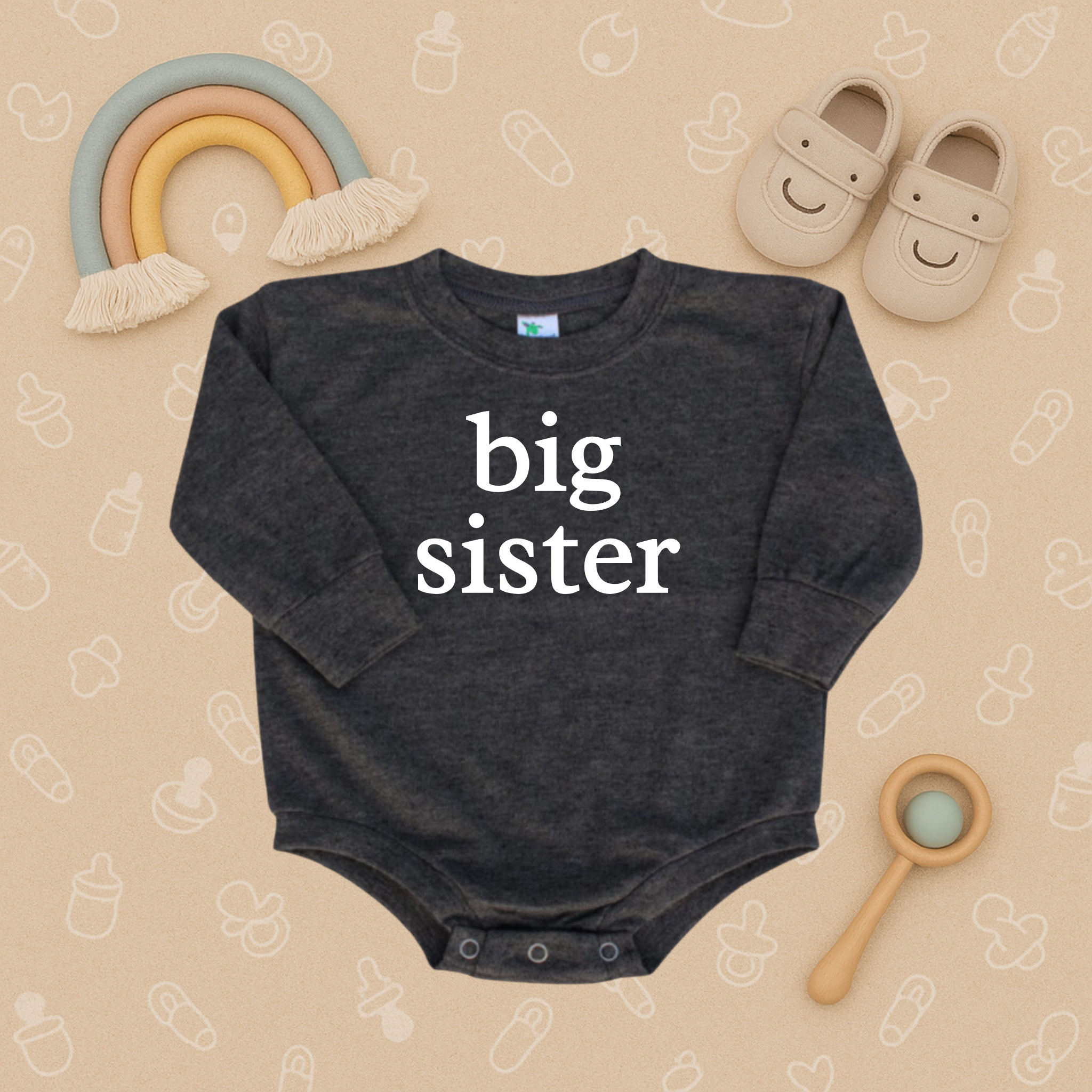 Celebrate your little one’s promotion with our Big Sister Baby Bubble Romper – the perfect sibling announcement outfit or everyday favorite! Made from soft, breathable cotton with easy snap closures, this romper combines comfort and style for all-day play. Whether it’s for a pregnancy reveal, family photos, or a thoughtful baby shower gift, this sweet design makes big brother feel extra special.