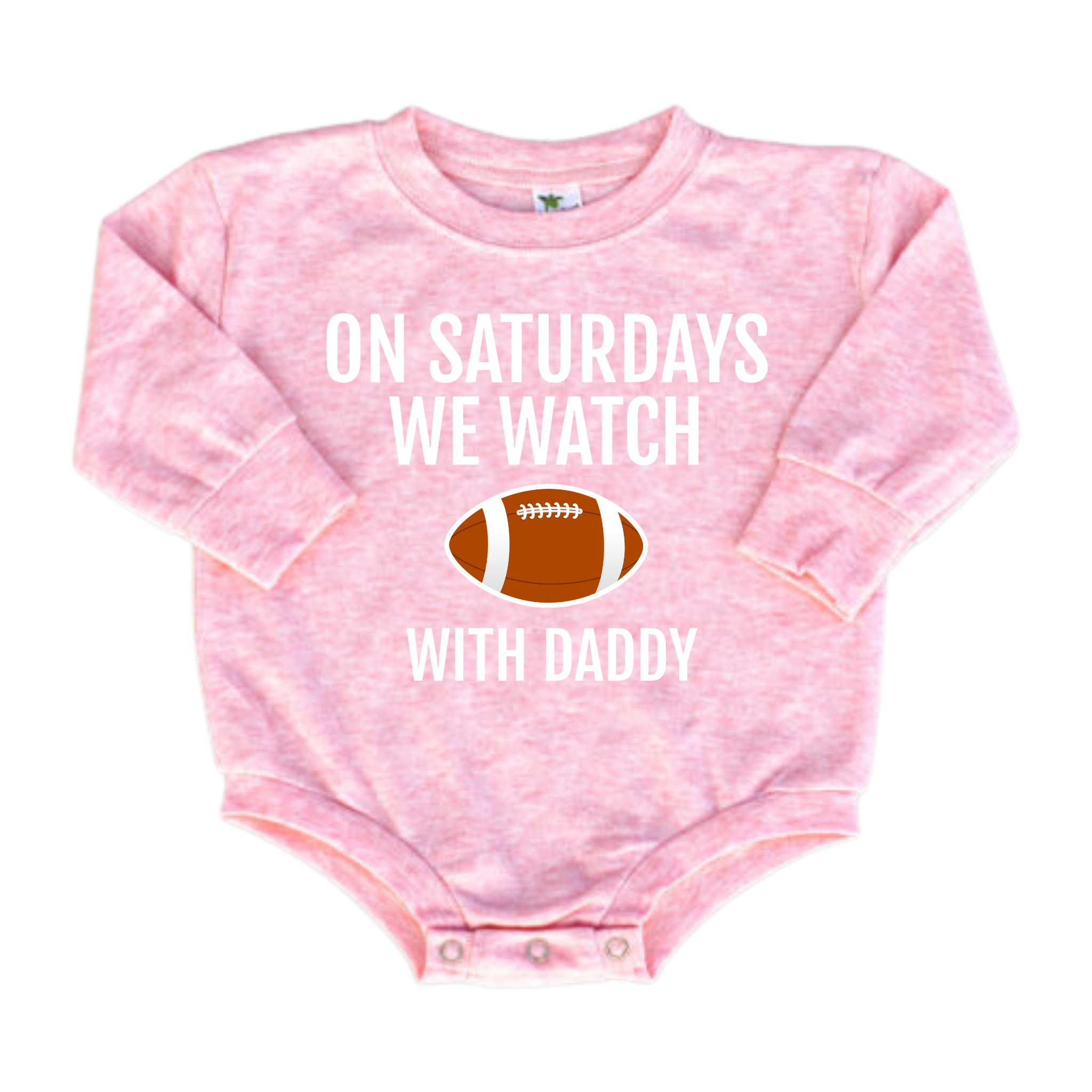 Celebrate football season in the cutest way with this "On Saturdays We Watch Football with Daddy" baby bubble romper. Perfect for cozying up during game day, it keeps your little one comfy while sharing special moments with daddy. Soft, playful, and adorable—this romper makes every Saturday feel like a touchdown!