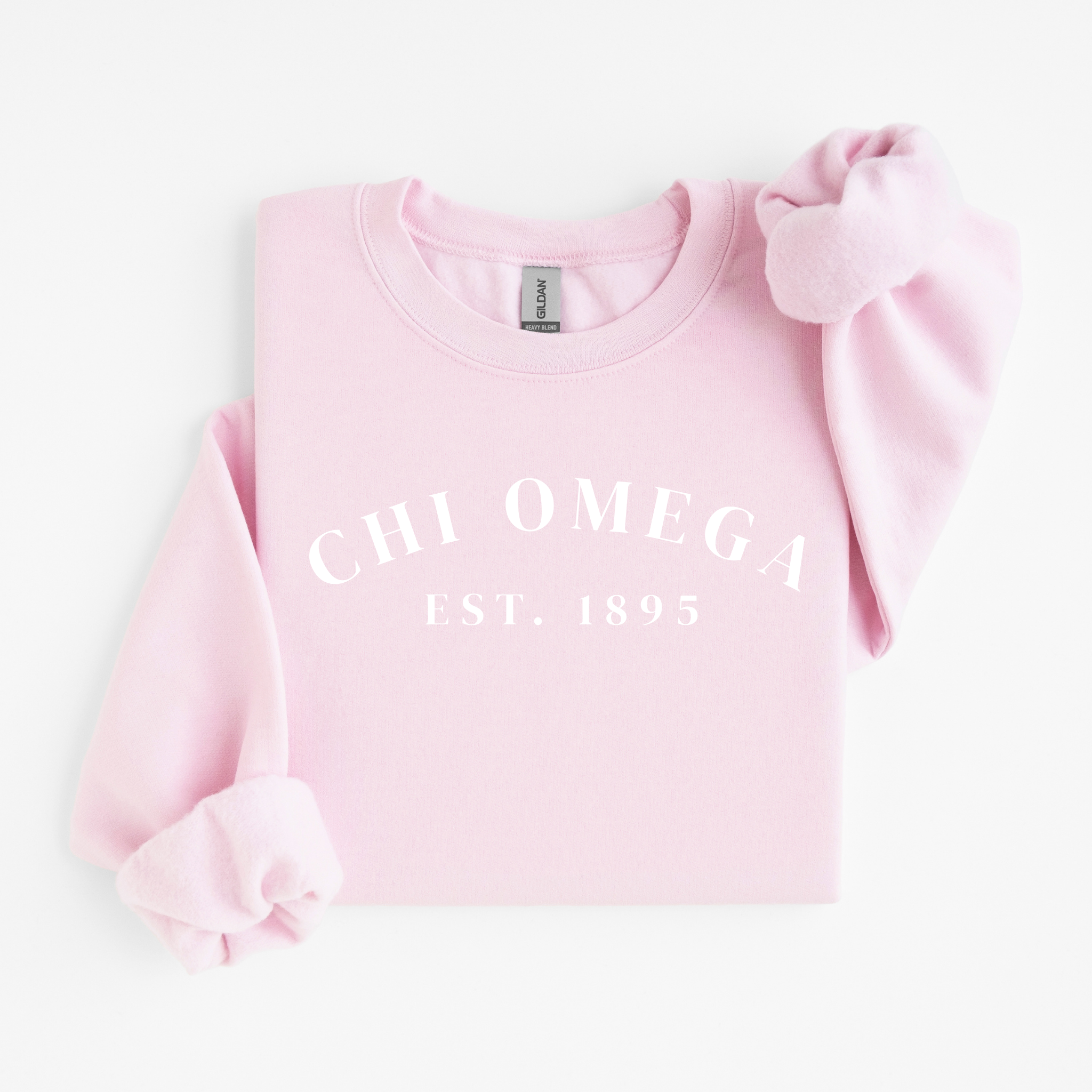 Stay cozy and spirited with the Chi Omega Est 1895 White Letters Sweater! Perfect for chilly days or showing off your Chi Omega pride, this sweater wraps you in warmth while keeping your style on point. Whether you're cheering at a game or just lounging with friends, its rich cardinal color and classic design make it a go-to for every sister. Slip it on and let your Chi Omega charm shine bright and snug!