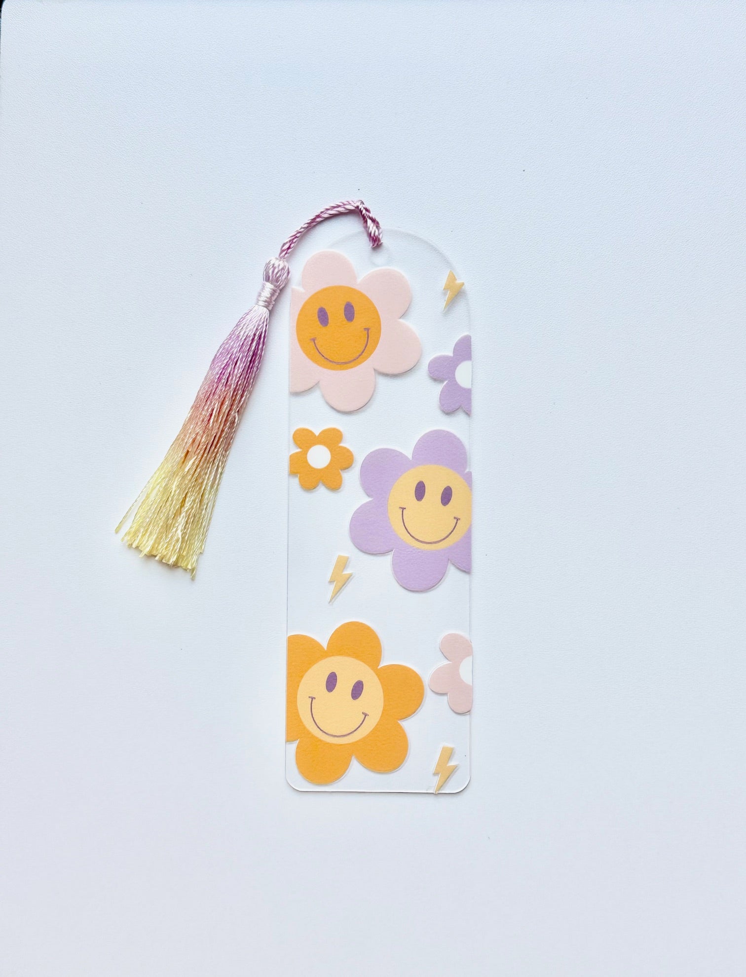 Bring a burst of happy energy to your reading time with our Smiley Face Flowers Bookmark with Tassel – the perfect mix of cute and cheerful. Made from sturdy acrylic and topped with a soft, stylish tassel, this bookmark keeps your place while adding a fun floral touch to any book, planner, or journal. It’s the ideal bookish gift for readers, teachers, students, or anyone who loves a little joy between the pages.