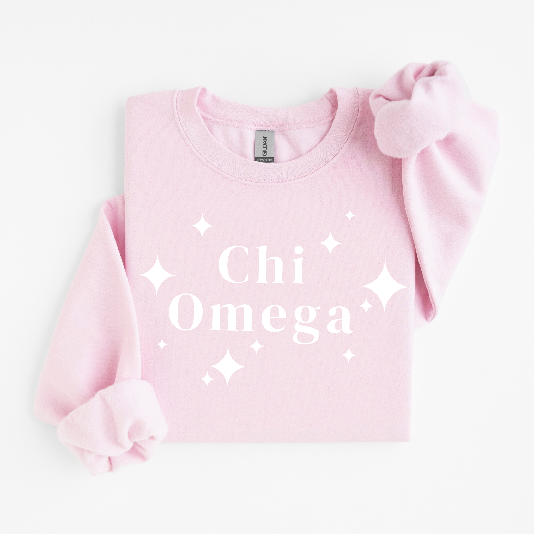 Celebrate sisterhood in style with the Chi Omega White Stars Sweater! This cozy crewneck is super soft and comfy—perfect for those chilly campus days or lounging with your big/little. Whether you're gifting it or treating yourself, it’s an ideal way to show off your Chi Omega pride while staying snug and stylish. Get ready to star in comfort and charm!