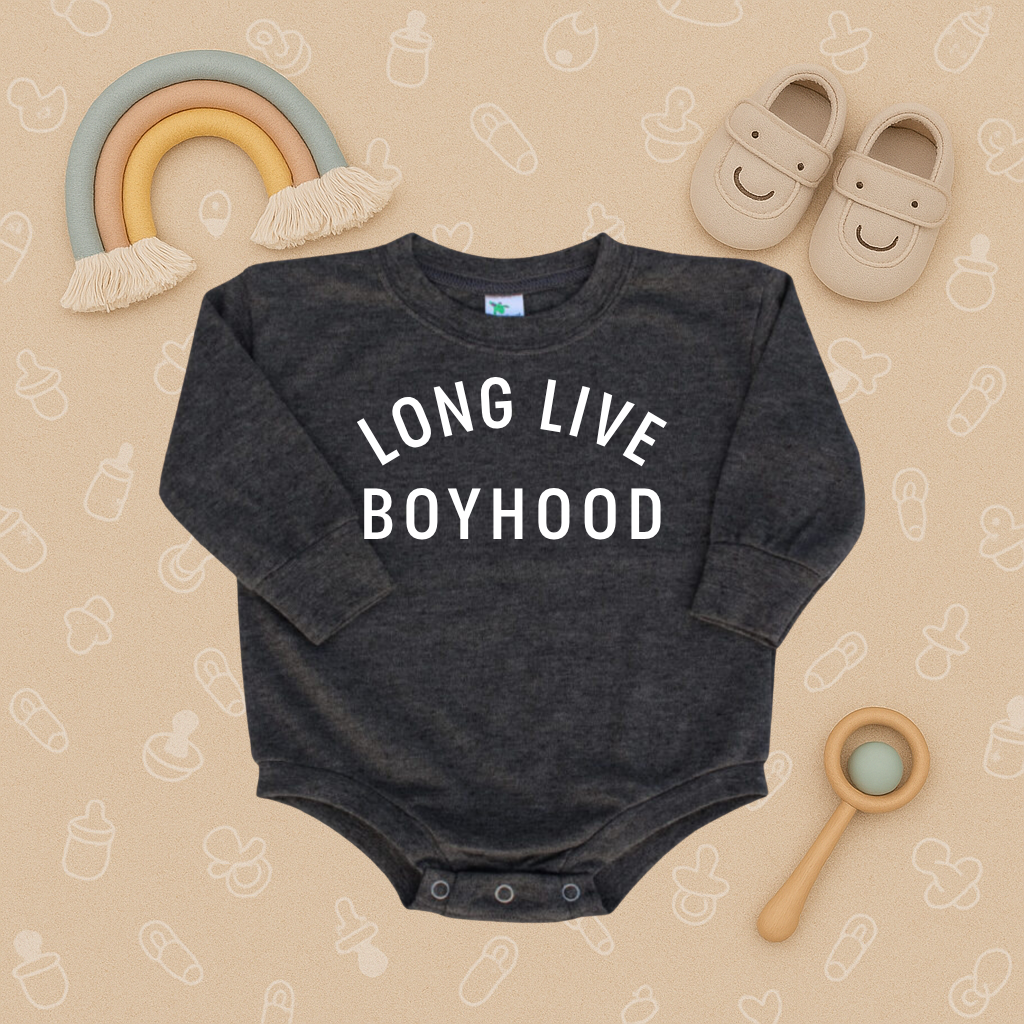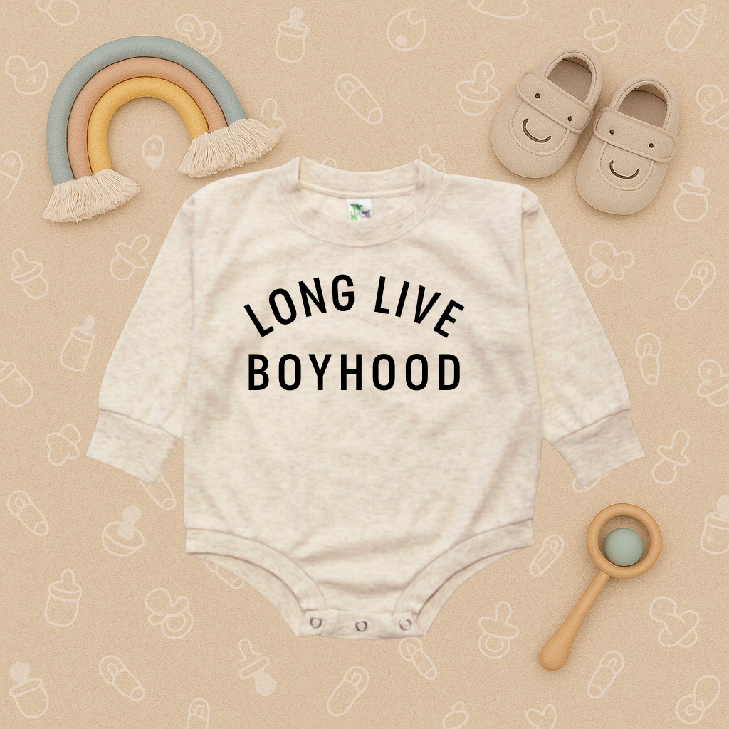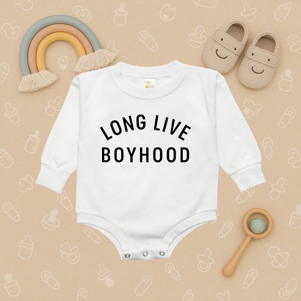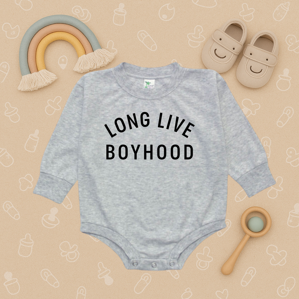 Celebrate all the messy, magical moments of raising boys with our Long Live Boyhood Bubble Romper – the perfect infant bodysuit for everyday adventures. Made from soft, breathable cotton with snap closures for quick diaper changes, this comfy onesie is ideal for playdates, photo ops, park days, and snuggles. Featuring a sweet, nostalgic “Long Live Boyhood” design, it’s a heartfelt baby gift for new moms, toddler mamas, and anyone who loves raising tiny explorers.
