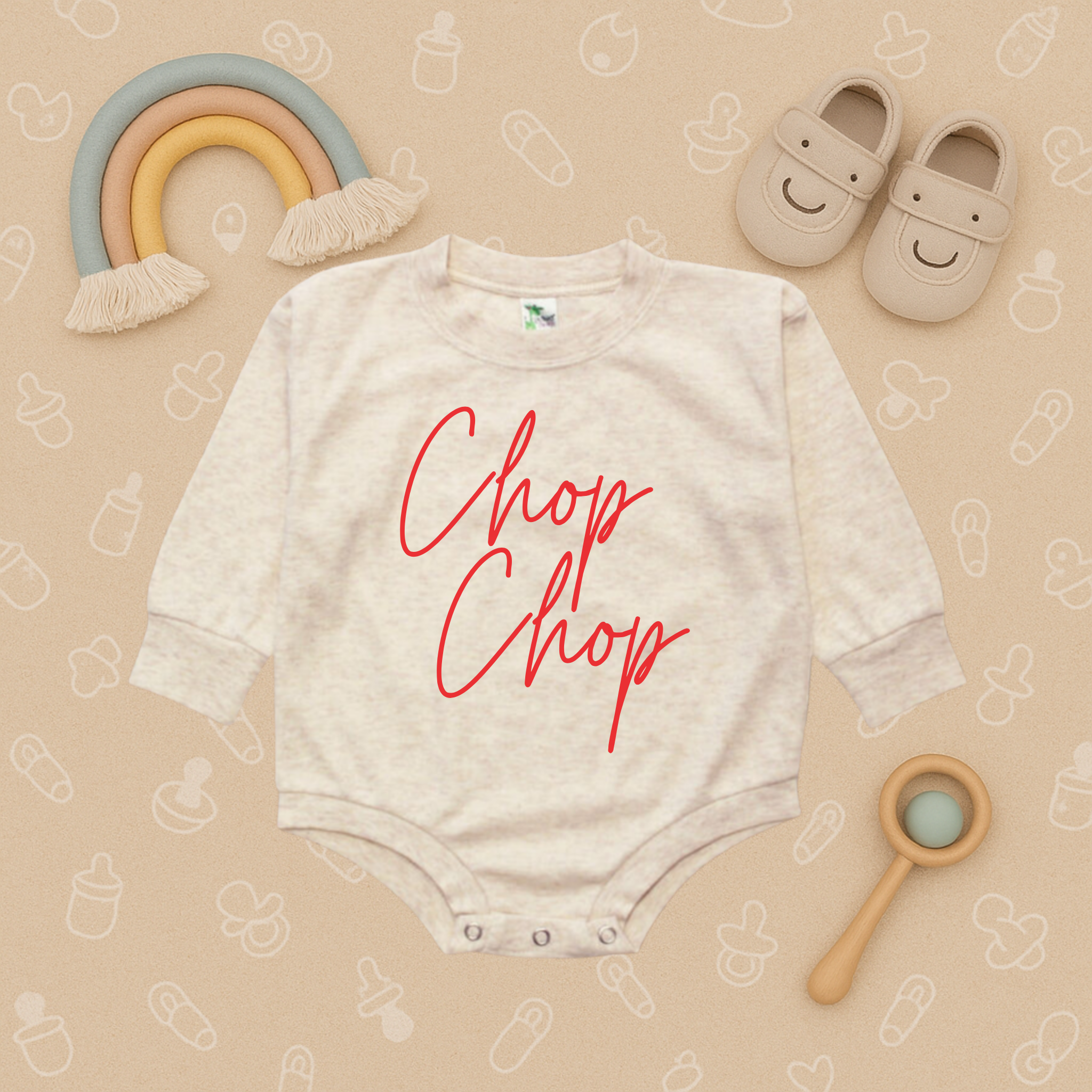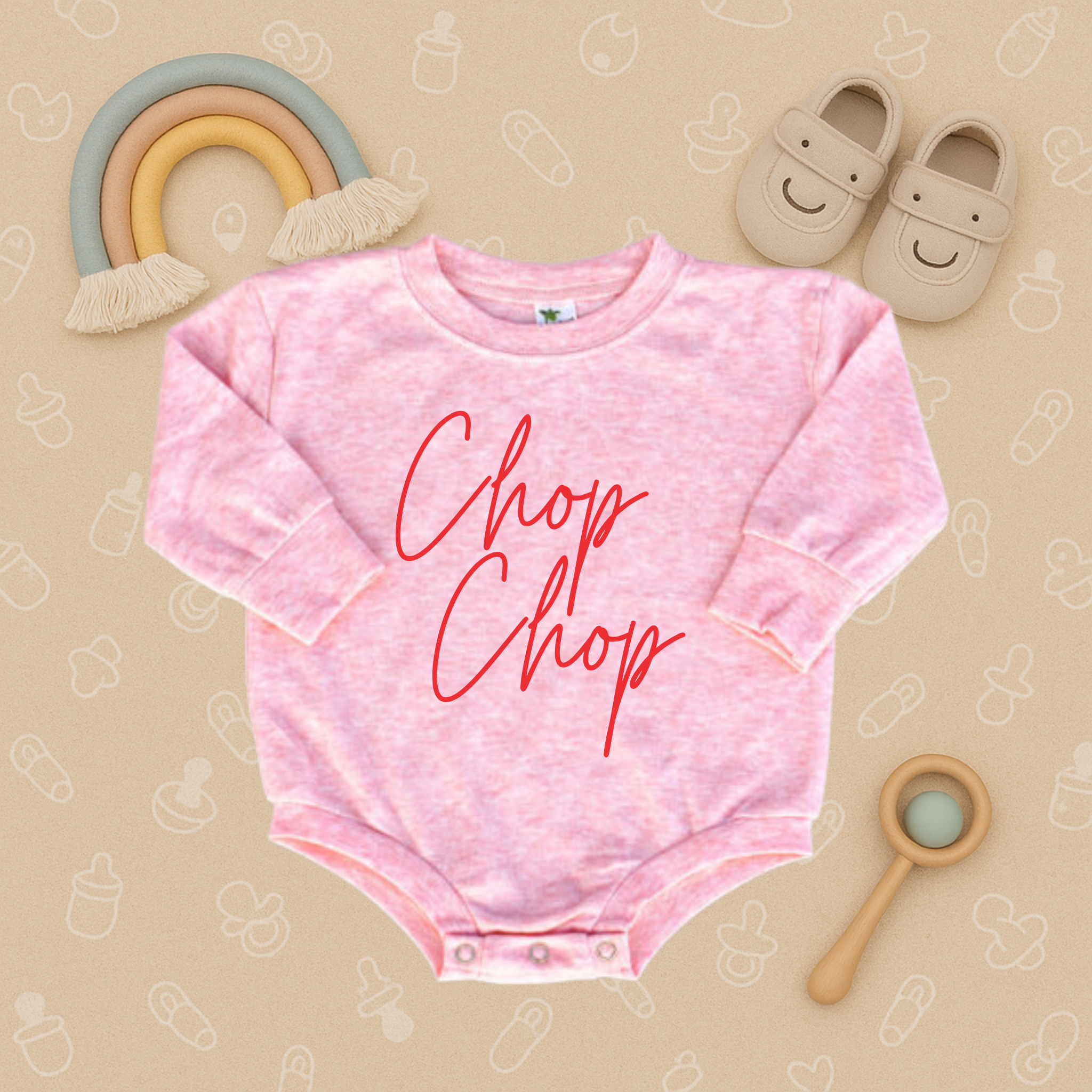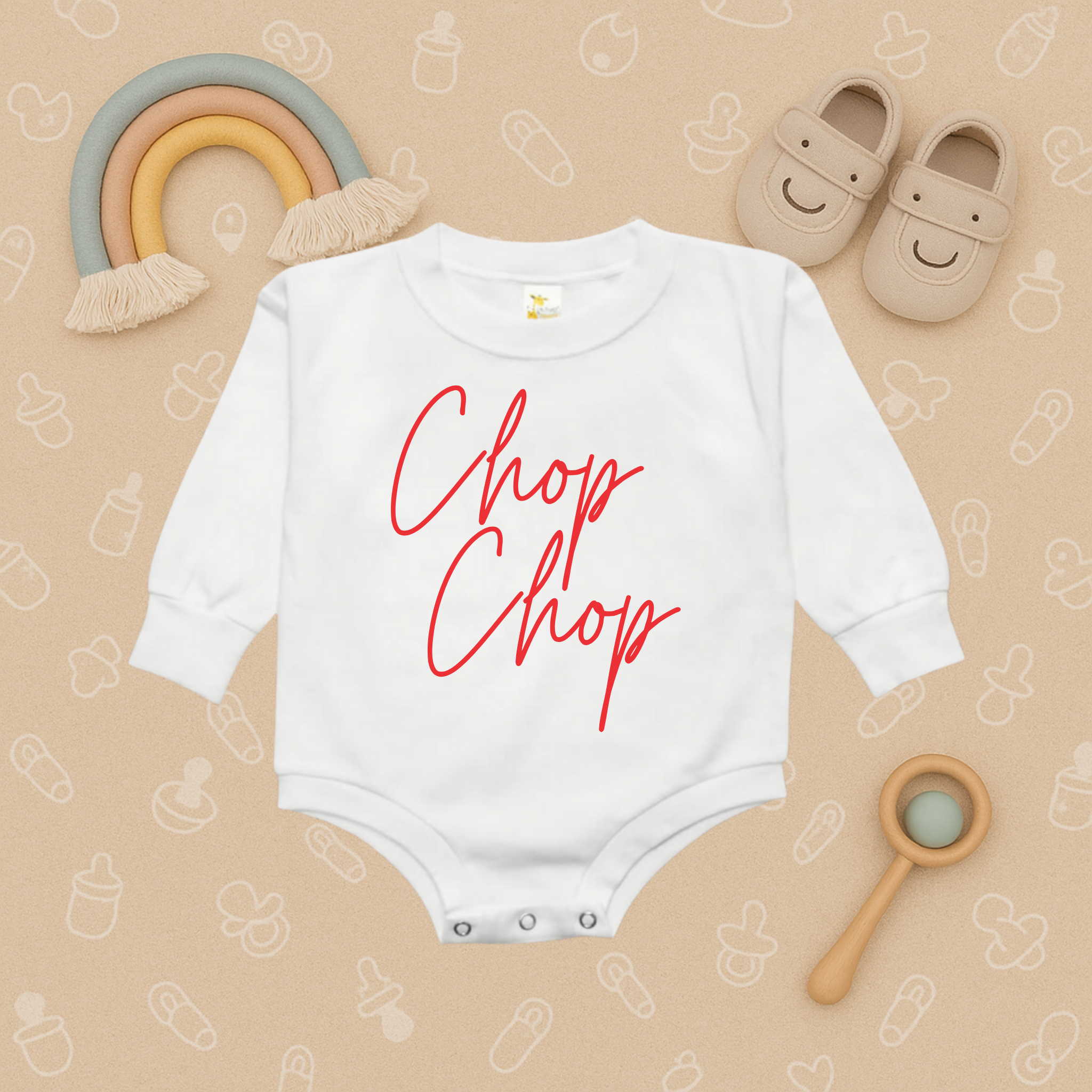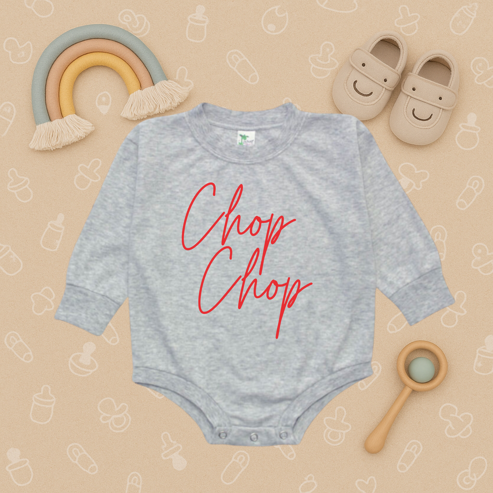 Get your little fan ready for game day with our Chop Chop Bubble Romper – a fun and spirited baseball baby bodysuit perfect for families who love cheering at the ballpark. This playful infant onesie brings big baseball energy to the tiniest fans, making it a great outfit for games, watch parties, or family outings.
